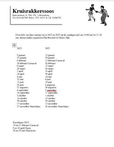 De dansavonden zijn van 19.00 uur tot 21.30 uur